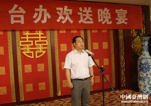 甘肅省臺(tái)辦主任趙少智在歡送晚宴上致辭。(圖片來(lái)源:甘肅省臺(tái)辦)