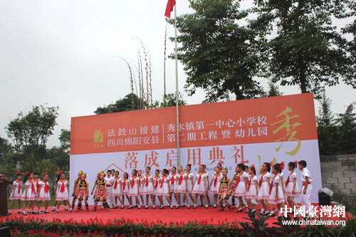 四川省綿陽(yáng)市安縣秀水鎮(zhèn)第一中心小學(xué)學(xué)生在落成儀式上進(jìn)行文藝表演。(圖片來(lái)源:綿陽(yáng)市臺(tái)辦)