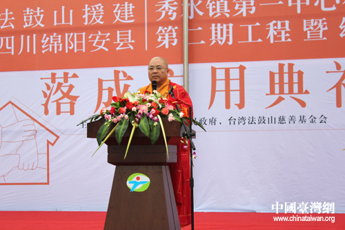 臺(tái)灣法鼓山果東方丈在儀式上致辭。(圖片來(lái)源:綿陽(yáng)市臺(tái)辦)