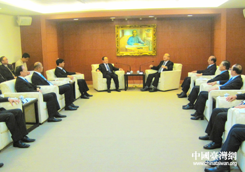 吳伯雄在致辭中對鹿心社一行的到來表示熱烈歡迎。他表示,贛臺兩地經(jīng)貿(mào)、投資、旅游、文化等領(lǐng)域合作潛力巨大,希望兩地多進行交流。通過經(jīng)貿(mào)合作和人文交流,讓兩岸人民手牽手、心連心。