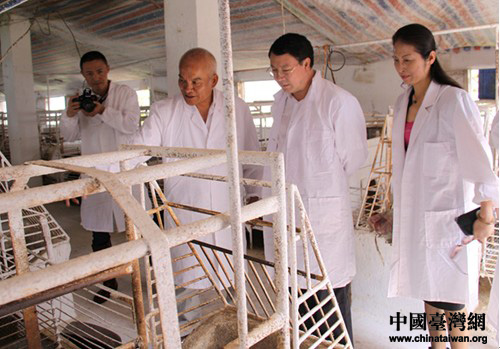在開陽縣,調(diào)研組一行在縣委副書記覃昆,開陽縣政協(xié)副主席、縣委統(tǒng)戰(zhàn)部部長(zhǎng)陳剛等陪同下考察了“國(guó)家級(jí)農(nóng)業(yè)產(chǎn)業(yè)化重點(diǎn)龍頭企業(yè)”——貴陽臺(tái)農(nóng)種養(yǎng)殖有限公司。貴陽臺(tái)協(xié)會(huì)副會(huì)長(zhǎng)、臺(tái)農(nóng)公司董事長(zhǎng)李昭宏對(duì)新任主任來筑調(diào)研首站選定臺(tái)農(nóng)企業(yè)非常感動(dòng),他認(rèn)真向周素平一行介紹了飼料生產(chǎn)、銷售等生產(chǎn)經(jīng)營(yíng)現(xiàn)狀和環(huán)保改造及廢料再利用情況。周素平主任邊聽邊問,除了參觀飼料自動(dòng)輸送設(shè)備、500立方沼氣發(fā)電設(shè)備外,還不顧天氣炎熱,徑直走進(jìn)養(yǎng)殖現(xiàn)場(chǎng)查看,他對(duì)企業(yè)注重開發(fā)新技術(shù)和注重環(huán)保的理念表示肯定,希望可以將豬場(chǎng)的壓嘴式自動(dòng)飲水器、培養(yǎng)小豬的保溫毯等小發(fā)明為更多農(nóng)民所了解和共享。