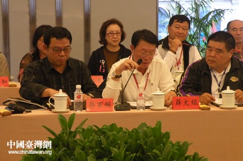 阿里山茶協(xié)理事長(zhǎng)薛文鎰發(fā)言。(黔西南州臺(tái)辦 吳文光 攝)