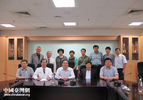 威海市醫(yī)療衛(wèi)生交流團成員在臺北醫(yī)學院考察時合影留念。(圖片來源:威海市臺辦)