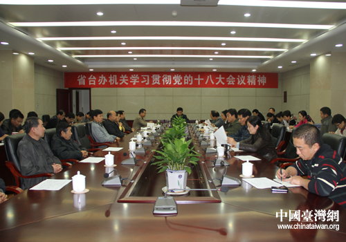 中國(guó)臺(tái)灣網(wǎng)11月21日西安消息 11月20日下午,陜西省臺(tái)辦召開(kāi)全體干部職工大會(huì),認(rèn)真?zhèn)鬟_(dá)學(xué)習(xí)黨的十八大精神。陜西省臺(tái)辦主任閆超英就貫徹落實(shí)工作提出了具體要求,副主任王康主持會(huì)議。