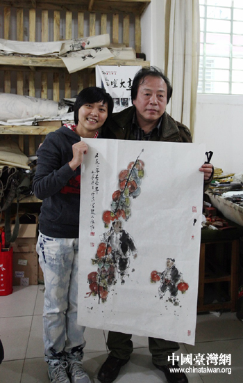 回鄉(xiāng)期間,汪蘇芳儀女士一行還特意拜會了她的老朋友——臨澧縣知名畫家覃仕泉先生。去年11月,汪蘇芳儀女士陪同她的婆婆汪老太太回鄉(xiāng)祭祖,曾與覃仕泉先生有過一面之緣,汪老太太還獲贈覃先生國畫作品《喜盈門》。對于這幅作品,汪老太太十分珍愛,回到臺灣后,頻頻向親友展示。汪蘇芳儀的大女兒是個國畫迷,看到《喜盈門》這幅作品后愛不釋手,便撒嬌向奶奶索要。一向疼愛孫女的汪老太太卻一反常態(tài)沒有答應(yīng),“這是覃大師送我的,誰也不送,我要將它掛在自己的房間里,看到這幅畫就像看到了家鄉(xiāng)的親人。”聽了汪蘇芳儀女士的介紹,覃仕泉先生非常感動,當即潑墨揮毫,現(xiàn)場作畫《又是一年春來早》相贈其大女兒。得到覃先生的墨寶,汪蘇芳儀和她的兒女們十分高興,表示一定將其帶到臺灣好好珍藏,更希望覃先生能到臺灣去開個人畫展,把湖湘文化介紹到臺灣,讓更多的臺灣同胞了解我們的傳統(tǒng)文化。(中國臺灣網(wǎng)臨澧縣臺辦通訊員 伍玲)