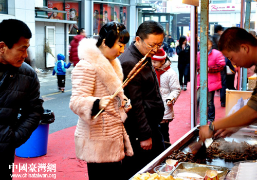 前來(lái)品嘗臺(tái)灣美食的馬鞍山市民。(圖片來(lái)源:馬鞍山市臺(tái)辦)