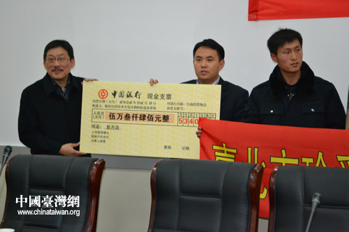 臨沂市臺灣同胞投資企業(yè)協(xié)會向貧困家庭捐助。(圖片來源:臨沂市經(jīng)開區(qū)臺辦)