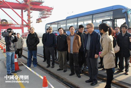 南臺灣文化暨經(jīng)濟產(chǎn)業(yè)聯(lián)盟協(xié)會參訪團考察岳陽城陵磯港口。(圖片來源:岳陽臺辦)