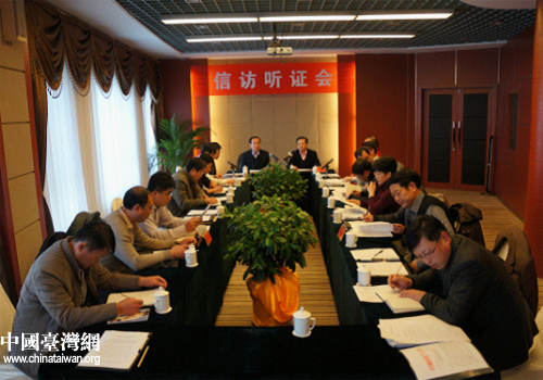 中國臺灣網(wǎng)1月4日威海消息 日前,威海市臺辦牽頭在名蘭假日大酒店會議室組織召開了涉臺糾紛專案信訪聽證會。威海市政府副秘書長王文強(qiáng)出席會議并講話,威海市臺辦主任于連波主持,市臺辦、市司法局、市仲裁委、市律師協(xié)會、文登法制辦、文登市臺辦等6個部門的分管領(lǐng)導(dǎo)和法律專業(yè)人士組成的專案協(xié)調(diào)小組以及糾紛當(dāng)事人等共計18人參加了會議。