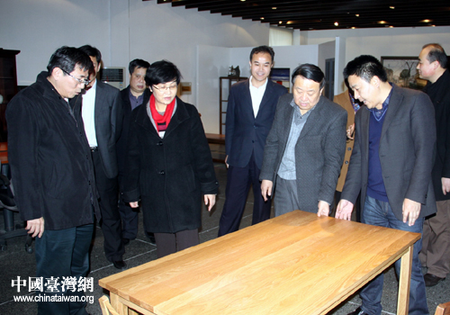 郇梅一行走訪日照嵐橋富凱木業(yè)有限公司。(圖片來(lái)源:日照市臺(tái)辦)