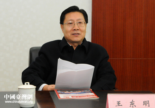 在聽取了省臺辦主任劉俊杰的工作匯報后,王東明充分肯定了四川對臺工作取得的成績,代表省委向全省對臺系統(tǒng)干部職工致以新春問候。他指出,四川對臺工作指導(dǎo)思想明確,重點突出,圍繞中心、服務(wù)大局意識很強,為全省經(jīng)濟社會發(fā)展做出了重要貢獻。特別是近年來對臺經(jīng)濟合作取得了明顯成效,所形成的電子信息、飲料食品、建筑建材、百貨零售四大臺資企業(yè)產(chǎn)業(yè)集群,也正是全省重點發(fā)展的支柱產(chǎn)業(yè)范疇。