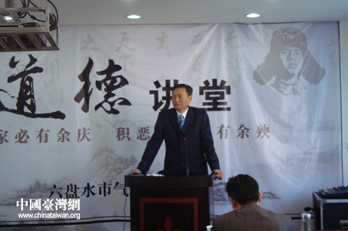 中國臺灣網(wǎng)3月11日六盤水消息 日前,貴州省六盤水市臺辦配合六盤水市文明辦邀請旅居大陸的臺灣學(xué)者王毅明先生為水礦控股集團總醫(yī)院、水城高速公路管理處、六盤水市氣象局、六盤水市供電局、六盤水市地方稅務(wù)局鐘山經(jīng)濟開發(fā)區(qū)分局、六盤水市實驗一中等單位開設(shè)的“道德講堂”,為干部職工及學(xué)生講解中國傳統(tǒng)文化。
