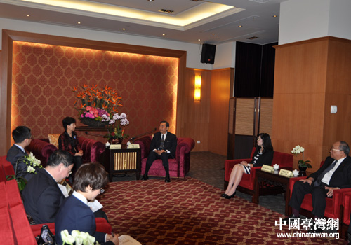 與臺(tái)灣貿(mào)易中心王志剛董事長座談。(貴州省臺(tái)辦 楊輝 攝)