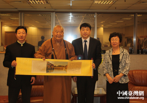 考察團(tuán)一行拜會(huì)星云大師并合影留念。(圖片來源:葫蘆島臺(tái)辦)