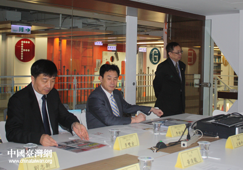 與旺報(bào)商洽相關(guān)合作意向。(圖片來源:葫蘆島臺(tái)辦)