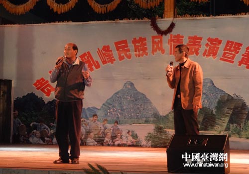 阿美族父子同臺(tái)演出合唱“草原上升起不落的太陽(yáng)”。(黔西南臺(tái)辦 李席虎 攝)