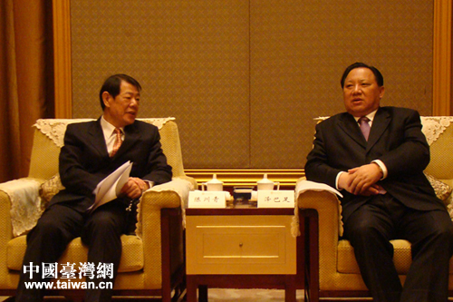 澤巴足會見臺灣公務(wù)人員協(xié)會理事長陳川青一行。(圖片來源:甘肅省臺辦)