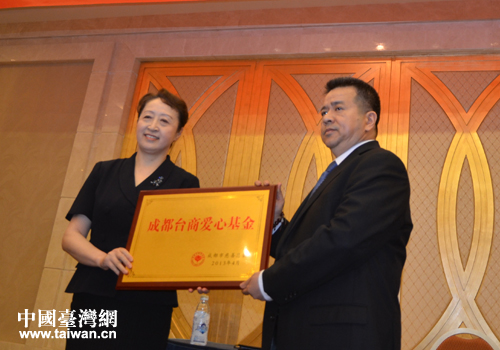 成都市慈善總會(huì)向成都臺(tái)協(xié)授牌“成都臺(tái)商愛心基金”。(圖片來源:成都市臺(tái)辦)