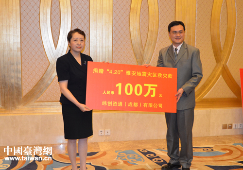 中國(guó)臺(tái)灣網(wǎng)4月25日成都消息 4月24日下午6點(diǎn),“情系災(zāi)區(qū) 血濃于水——4·20雅安地震四川臺(tái)商捐贈(zèng)儀式”在成都舉行。在蓉臺(tái)資企業(yè)100余家、臺(tái)商代表150余人參加了捐贈(zèng)儀式,為受災(zāi)同胞慷慨解囊,幫助災(zāi)區(qū)同胞度過難關(guān),重建家園。據(jù)統(tǒng)計(jì),現(xiàn)場(chǎng)共募得臺(tái)商賑災(zāi)捐贈(zèng)810余萬元,其中現(xiàn)場(chǎng)捐款470萬元,捐贈(zèng)物資價(jià)值340多萬元。捐贈(zèng)儀式現(xiàn)場(chǎng)還開展了愛心粽子、愛心便當(dāng)?shù)馁c災(zāi)義賣,一點(diǎn)一滴匯聚愛的洪流。