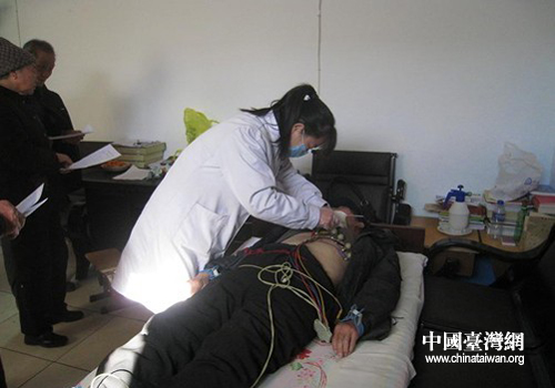 醫(yī)護(hù)人員為老人們聽心臟、做心電圖。(圖片來源:鄭州市臺(tái)辦)