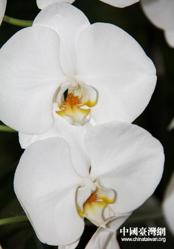 圖為臺(tái)灣珍品白蝴蝶蘭,一株有20個(gè)花瓣,培育成熟要5-10年,極為珍貴,世界上僅臺(tái)灣有20余株。(錦州市臺(tái)辦 崔國(guó)志 攝)