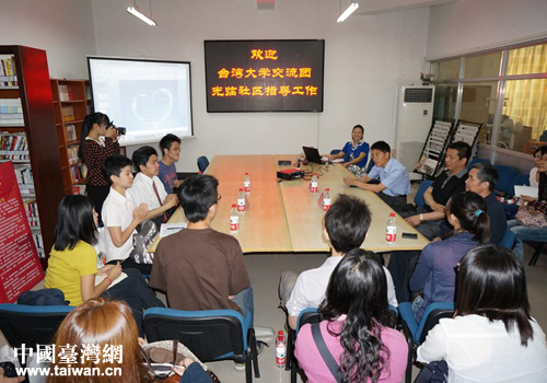 參訪團(tuán)簡要介紹了臺灣社區(qū)組織、社區(qū)管理的一些基本情況,聽取了社區(qū)的情況介紹,與美麗園社區(qū)工作人員圍繞社區(qū)組織、基層民主建設(shè)、社區(qū)管理、社區(qū)服務(wù)等議題進(jìn)行了熱烈的交流與探討并實(shí)地參觀了社區(qū)。通過交流和參觀,豐富了學(xué)生們的經(jīng)歷,增進(jìn)了臺灣青年學(xué)生對大陸的了解。
