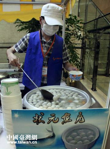 來自臺灣的廖宜通帶來的純手工古法臺灣粽子和狀元魚丸,吸引了大批濟南市民。(圖片來源:山東省臺辦)