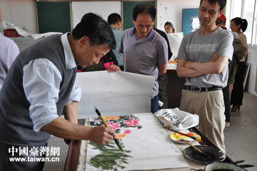 臺(tái)屬畫家現(xiàn)場(chǎng)作畫。(圖片來源:廣元市臺(tái)辦)