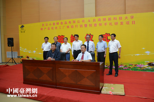 中國臺灣網(wǎng)6月20日武漢消息 6月18日下午,武漢小蜜蜂食品有限公司和臺灣明新科技大學(xué)在武漢市江夏區(qū)簽約“蜂產(chǎn)品觀光工廠體驗行銷暨創(chuàng)意伴手禮”項目。