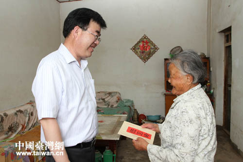 中國(guó)臺(tái)灣網(wǎng)7月2日東營(yíng)消息 7月1日,東營(yíng)市臺(tái)辦主任徐峰到下派幫扶的河口區(qū)新戶(hù)鎮(zhèn)龍泉村走訪慰問(wèn)老黨員,為他們送上節(jié)日的祝福。