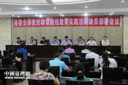 四川臺辦召開全體職工大會安排部署黨的群眾路線教育實踐活動。(圖片來源:四川省臺辦)