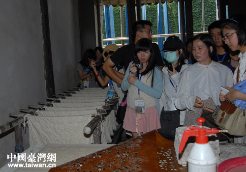 營員們參觀烏鎮(zhèn)藍(lán)印花布染坊。(圖片來源:上海市臺聯(lián))