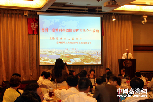 德州·臺(tái)灣科學(xué)園區(qū)現(xiàn)代產(chǎn)業(yè)合作論壇在臺(tái)中舉行。(圖片來(lái)源:德州市臺(tái)辦)
