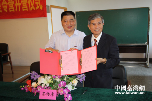 兩校校長簽訂姊妹學(xué)校備忘錄。(圖片來源:嘉興市臺辦)