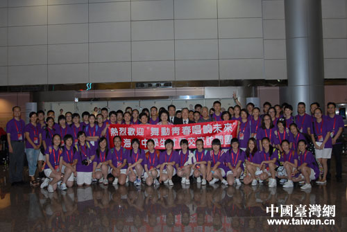 中國(guó)臺(tái)灣網(wǎng)8月19日臺(tái)北消息 8月16日下午,以全國(guó)臺(tái)聯(lián)副會(huì)長(zhǎng)、上海市臺(tái)聯(lián)名譽(yù)會(huì)長(zhǎng)林明月為團(tuán)長(zhǎng)的上海中學(xué)生才藝交流訪問(wèn)團(tuán)一行70余人抵達(dá)臺(tái)灣桃園機(jī)場(chǎng)。臺(tái)灣海峽兩岸經(jīng)建文教交流發(fā)展協(xié)會(huì)理事長(zhǎng)鄭金玲等到機(jī)場(chǎng)迎接。(中國(guó)臺(tái)灣網(wǎng)、上海市臺(tái)聯(lián)聯(lián)合報(bào)道)
