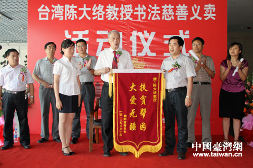 中國臺(tái)灣網(wǎng)8月23日朝陽消息 8月20日,來自臺(tái)灣著名學(xué)者、書法家陳大絡(luò)教授與朝陽市慈善總會(huì)聯(lián)手在朝陽市博物館舉行書法義賣活動(dòng)。