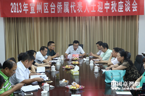 中國臺灣網(wǎng)9月21日宣城消息 9月16日下午,安徽省宣城市宣州區(qū)舉行2013年臺僑屬代表人士迎中秋座談會。來自宣州區(qū)部分臺灣同胞、港澳同胞、海外僑胞(三胞)及其親屬歡聚一堂,共迎中華民族團圓佳節(jié)。宣州區(qū)副區(qū)長夏永恒出席座談會,區(qū)政協(xié)副主席、區(qū)委統(tǒng)戰(zhàn)部部長顏于金出席并講話。