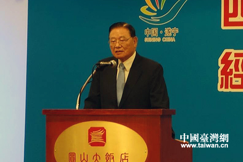 臺灣海基會原董事長、中國國民黨原副主席、臺灣“三三會”會長江丙坤致辭。(遂寧市臺辦供圖)