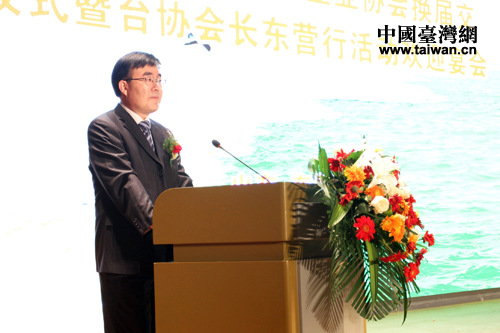 市政府副市長李俊峰在交接儀式上致辭。(東營市臺辦供圖)