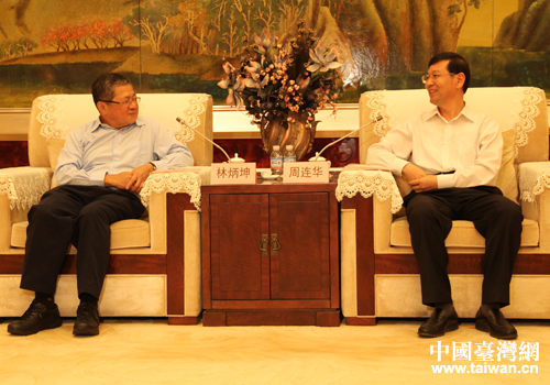 中國臺灣網(wǎng)10月16日淄博消息 日前,臺灣無黨團(tuán)結(jié)聯(lián)盟主席林炳坤、澎湖縣議會議長劉陳昭玲率臺灣澎湖地區(qū)兩岸交流協(xié)會參訪團(tuán)到淄博市參訪。市委副書記周連華、副市長張慶盈、省臺辦副主任曹曉武在齊盛國際賓館共同會見了林炳坤一行,市委副秘書長明子春、市臺辦主任王秀輝等陪同參加了會見。