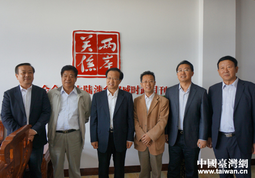市委副書記趙熙殿(左三)、《兩岸關系》雜志社法人代表、主持工作副社長鐘河林(右三)、市臺辦主任于連波(左一)等在《兩岸關系》雜志社威海工作站合影。(圖片來源:威海市臺辦)