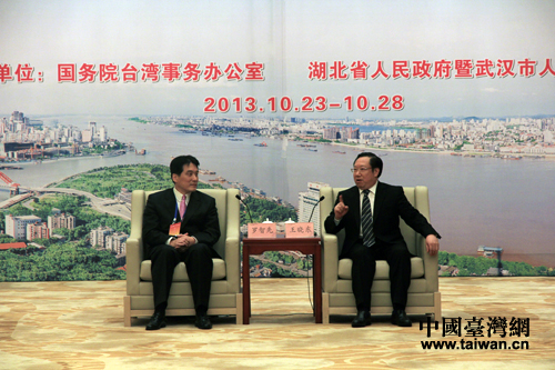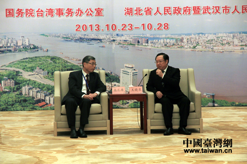 10月23日晚,湖北省委常委、常務(wù)副省長王曉東會見高孔廉。(中國臺灣網(wǎng) 馬迪 攝)