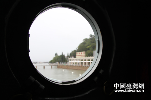 日前,記者登上東海艦隊(duì)某退役獵潛艇,用相機(jī)揭開它的神秘面紗。圖為舷窗外的港口。(中國(guó)臺(tái)灣網(wǎng) 馬迪 攝)