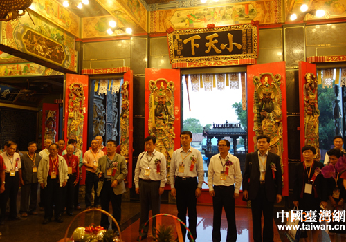 泰安市經(jīng)濟(jì)文化交流團(tuán)在善化東岳殿參訪。(圖片來(lái)源:泰安市臺(tái)辦)
