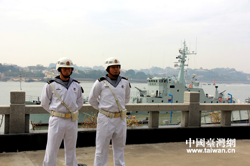 執(zhí)勤戰(zhàn)士背后便是著名的“海上花園”鼓浪嶼。(中國臺(tái)灣網(wǎng) 馬迪 攝)