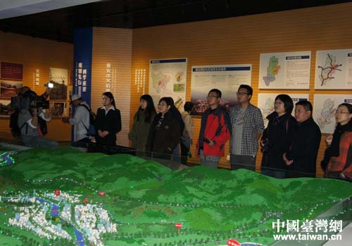 臺灣中時媒體集團采訪組一行在雅安采訪拍攝“4.20”地震災后重建規(guī)劃展。(圖片來源:四川省臺辦)
