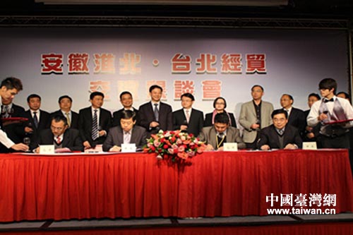 中國(guó)臺(tái)灣網(wǎng)12月16日臺(tái)北消息 日前,淮北市委副書記、市長(zhǎng)黃曉武率團(tuán)在臺(tái)北市參加淮北·臺(tái)北經(jīng)貿(mào)交流懇談會(huì),與來自臺(tái)灣的50多家企業(yè)及協(xié)會(huì)負(fù)責(zé)人,暢敘兩岸鄉(xiāng)情親情,共話兩地經(jīng)貿(mào)發(fā)展,并與臺(tái)灣企業(yè)成功簽訂兩個(gè)框架合作協(xié)議。