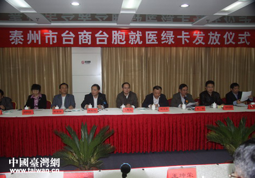 泰州市臺(tái)辦建立臺(tái)商就醫(yī)保健綠色通道并發(fā)放就醫(yī)綠卡。(圖片來(lái)源:泰州市臺(tái)辦)