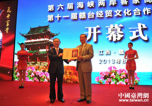 第六屆海峽兩岸客家高峰論壇和第十一屆贛臺(tái)經(jīng)貿(mào)文化合作交流大會(huì)現(xiàn)場(chǎng)。(圖片來(lái)源:江西省臺(tái)辦)
