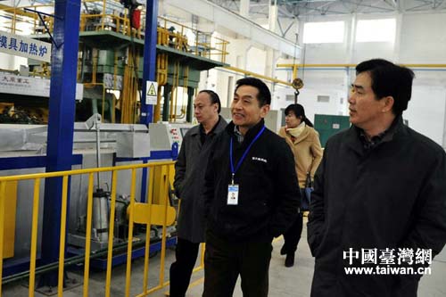 1月14日,青島市委副秘書長(zhǎng)、市臺(tái)辦主任田云南在膠州富士康科技集團(tuán)青島海源合金新材料有限公司走訪。(圖片來(lái)源:山東省臺(tái)辦)